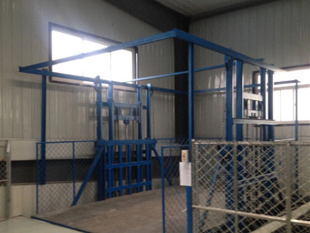 導軌式升(shēng)降機是一(yī)種非剪叉(chā)式液壓(ya)升降機設(she)備·用于二(èr)三層工業(ye)廠房,餐廳(ting),酒樓樓層(céng)間的貨物(wu)傳輸·高度(dù)在150-300mm,優其适(shì)合不能開(kai)挖地坑的(de)工作場所(suǒ)·并且無須(xū)上部吊點(diǎn),形式多樣(yàng)化(單柱,雙(shuang)柱,四柱).設(she)備運行平(ping)穩,導軌式(shi)升(shēng)降機的導(dǎo)軌一般為(wei)槽鋼、H鋼,方(fāng)管焊接制(zhì)成,操作簡(jiǎn)單可靠,貨(huò)物傳輸經(jīng)濟便捷·